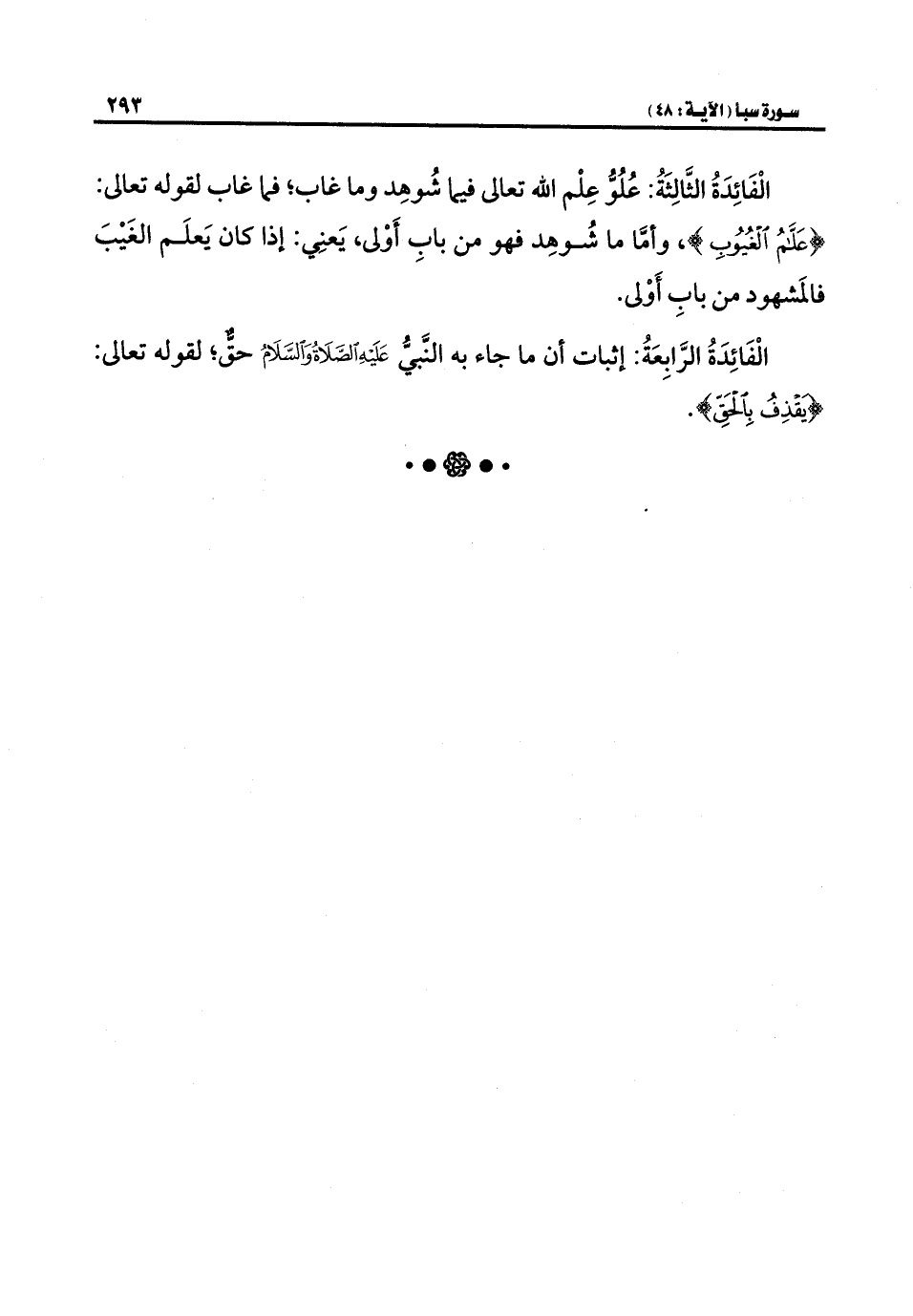 الْفَائِدَةُ الرَّابِعَةُ: إثبات أن ما جاء به النَّبيُّ عَلَيْهِ الصَّلَاةُ وَالسَّلَامُ حقٌّ؛ لقوله تعالى: {يَقْذِفُ بِالْحَقِّ}.