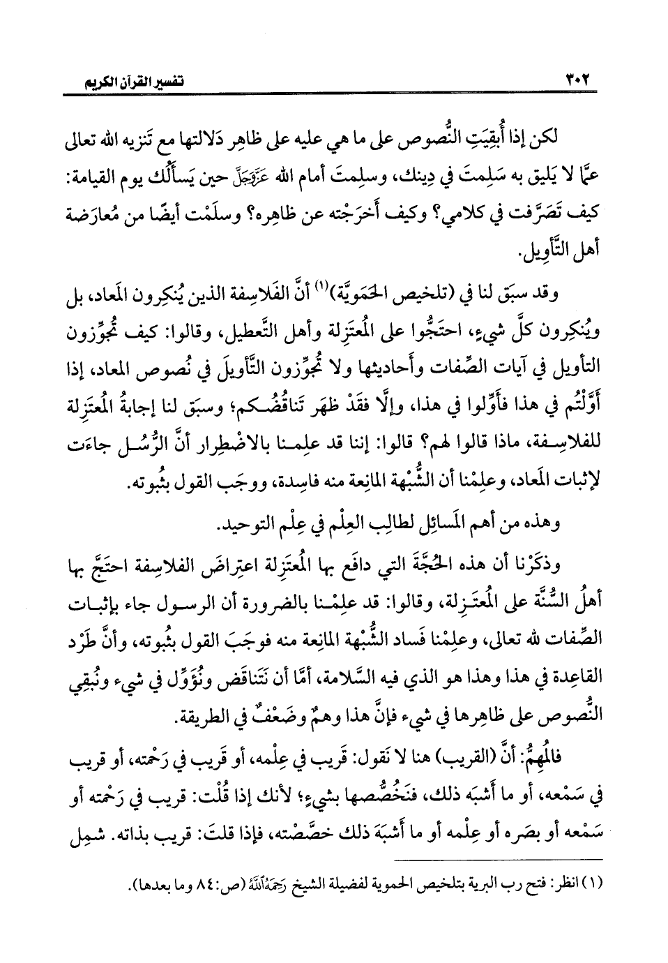(¬١) انظر: فتح رب البرية بتلخيص الحموية لفضيلة الشيخ رَحِمَهُ اللَّهُ (ص: ٨٤ وما بعدها).