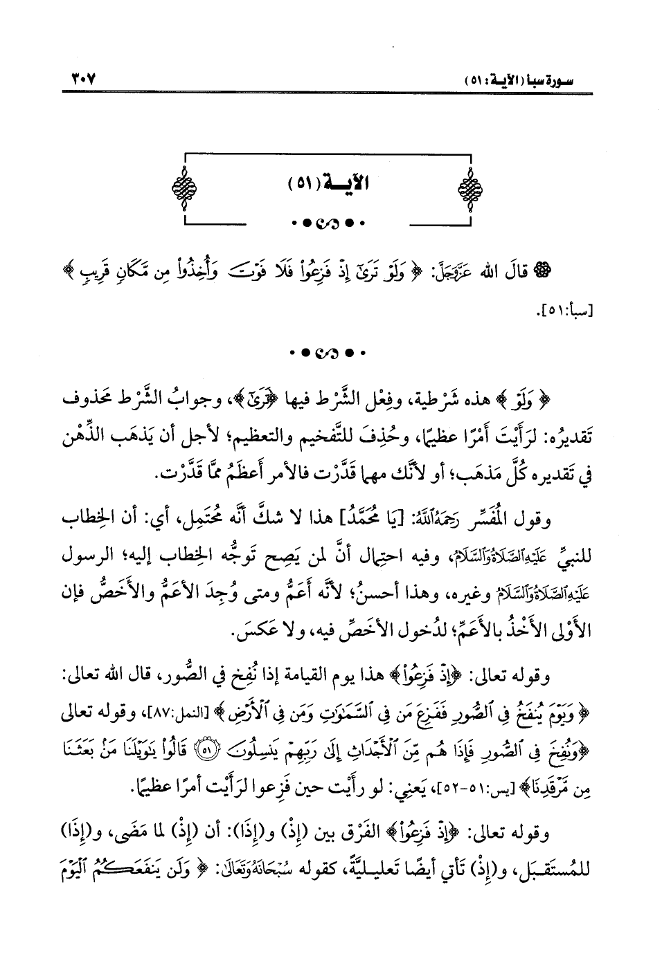 * قالَ الله - عز وجل -: {وَلَوْ تَرَى إِذْ فَزِعُوا فَلَا فَوْتَ وَأُخِذُوا مِنْ مَكَانٍ قَرِيبٍ} [سبأ: ٥١].