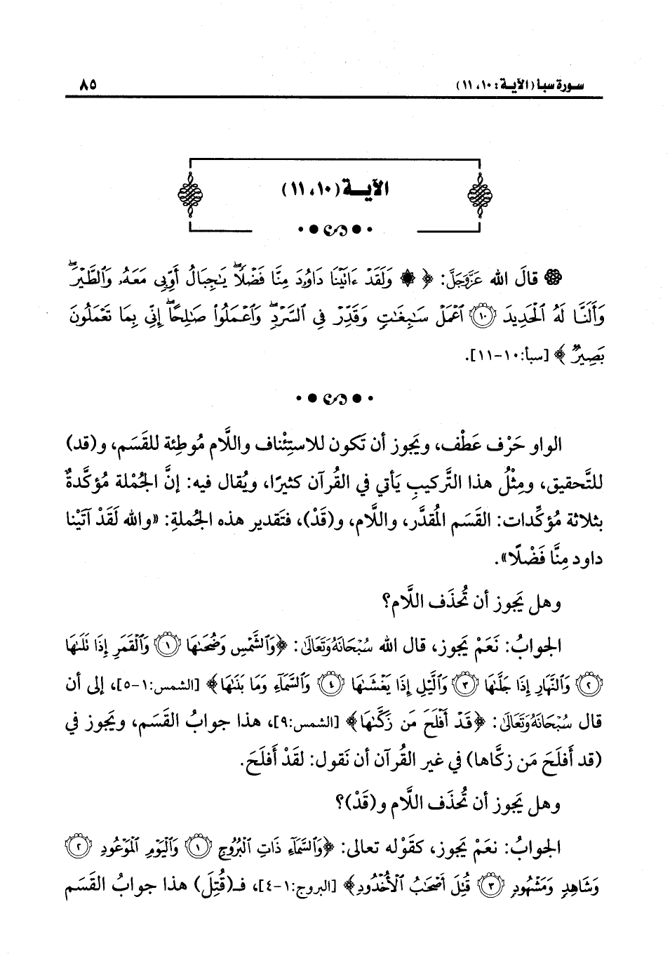 * قالَ الله عَزَّ وَجَلَّ: {وَلَقَدْ آتَيْنَا دَاوُودَ مِنَّا فَضْلًا يَاجِبَالُ أَوِّبِي مَعَهُ وَالطَّيْرَ وَأَلَنَّا لَهُ الْحَدِيدَ (١٠) أَنِ اعْمَلْ سَابِغَاتٍ وَقَدِّرْ فِي السَّرْدِ وَاعْمَلُوا صَالِحًا إِنِّي بِمَا تَعْمَلُونَ بَصِيرٌ} [سبأ: ١٠ - ١١].