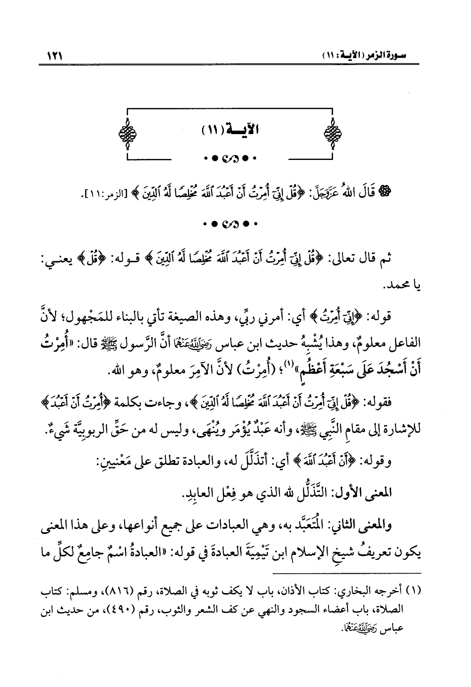 قَالَ اللهُ عَزَّ وَجَلَّ: {قُلْ إِنِّي أُمِرْتُ أَنْ أَعْبُدَ اللَّهَ مُخْلِصًا لَهُ الدِّينَ} [الزمر: ١١].