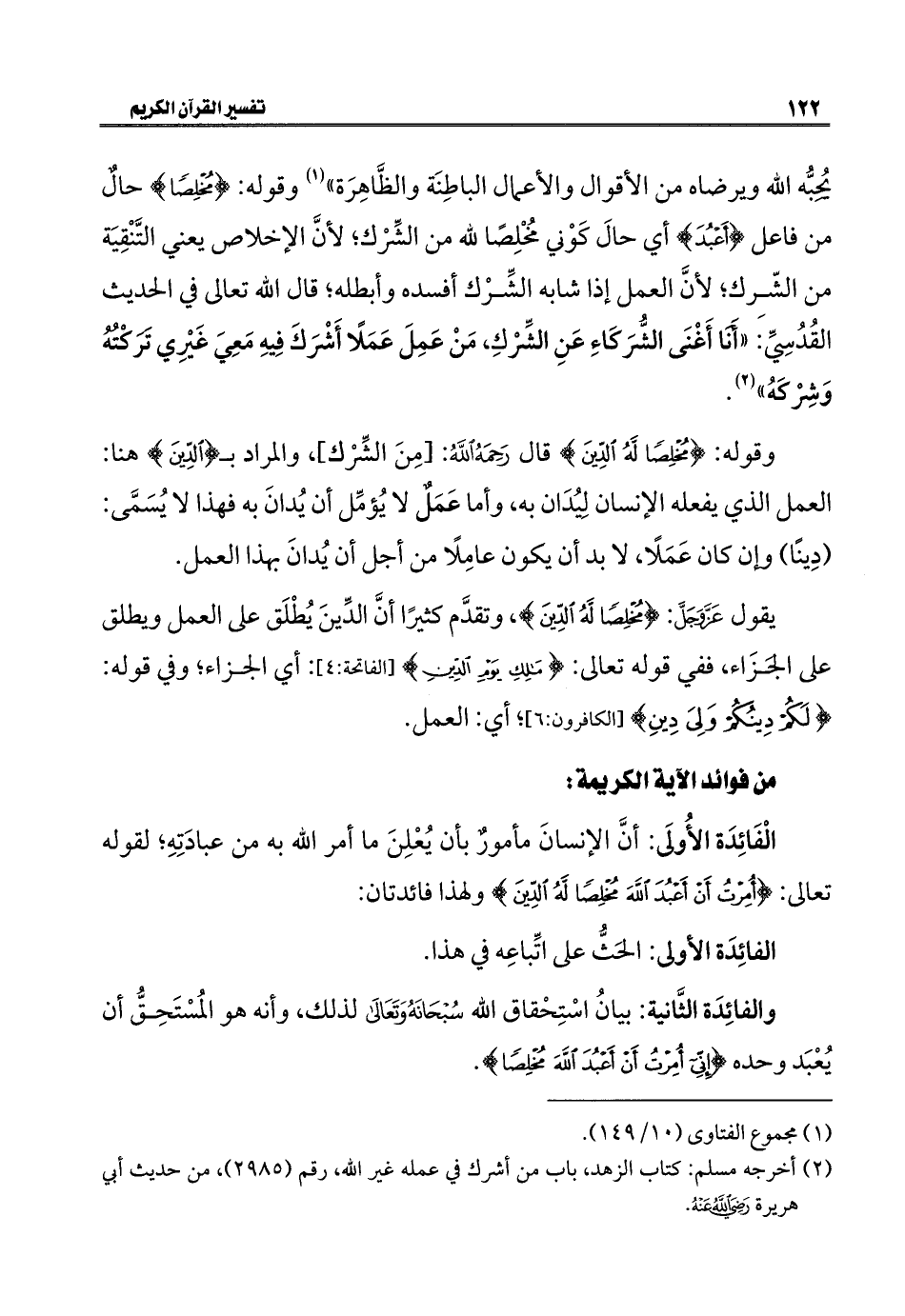 (٢) أخرجه مسلم: كتاب الزهد، باب من أشرك في عمله غير الله، رقم (٢٩٨٥)، من حديث أبي هريرة - رضي الله عنه -.