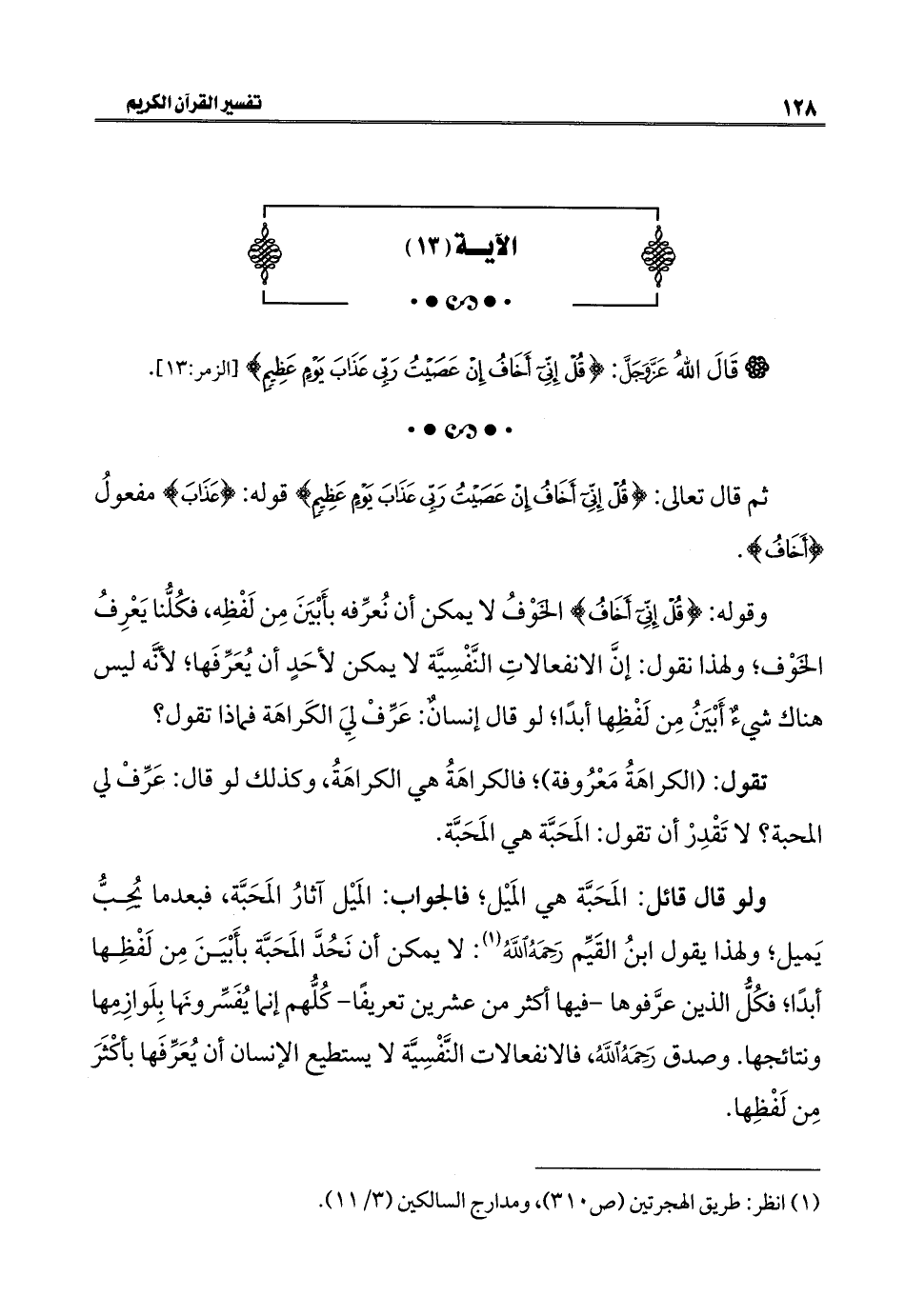 * قَالَ اللهُ عَزَّ وَجَلَّ: {قُلْ إِنِّي أَخَافُ إِنْ عَصَيْتُ رَبِّي عَذَابَ يَوْمٍ عَظِيمٍ} [الزمر: ١٣].