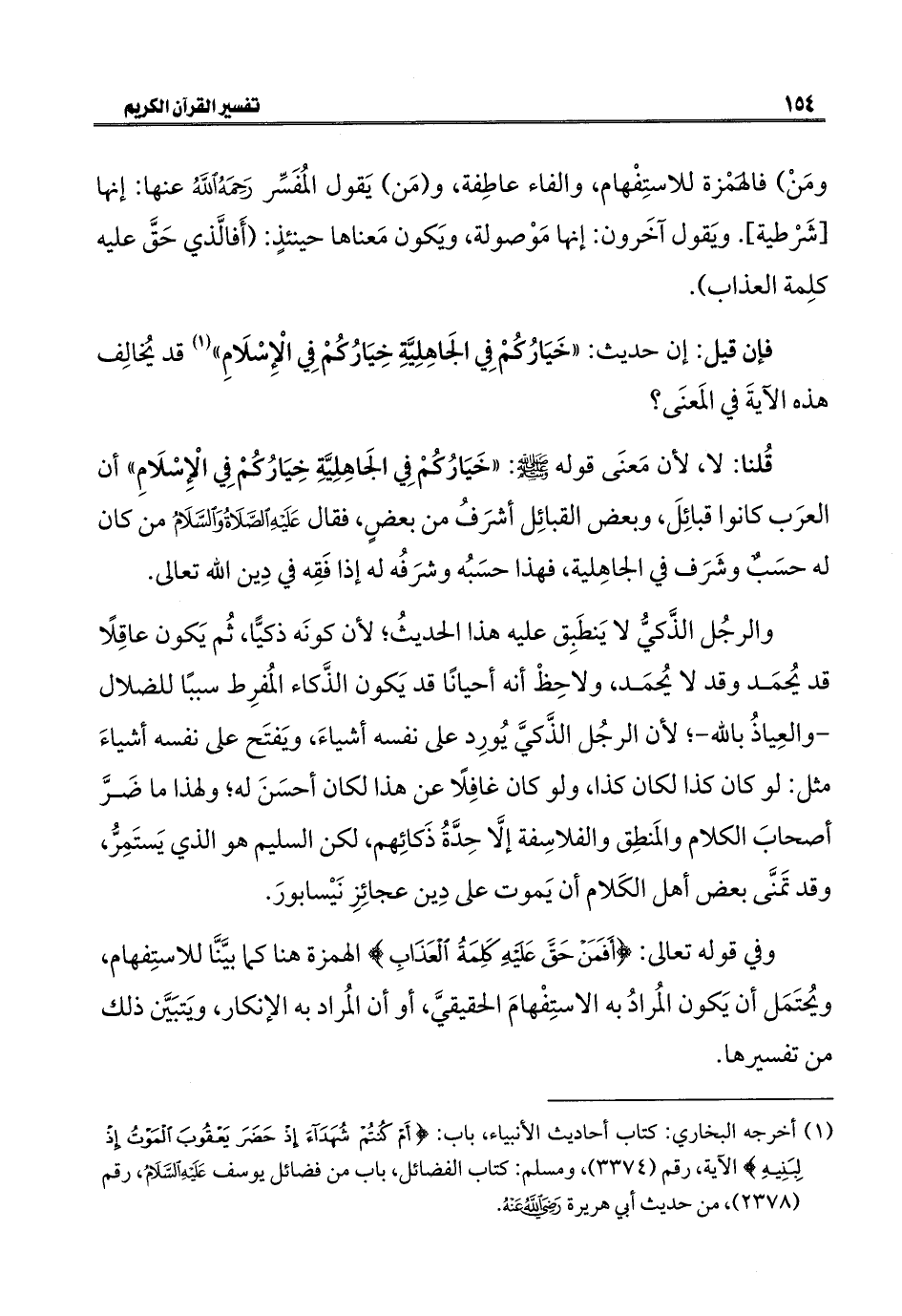 فإن قيل: إن حديث: "خَيَارُكُمْ فِي الجَاهِلِيَّةِ خِيَارُكُمْ فِي الْإِسْلَامِ" (١) قد يُخالِف هذه الآيةَ في المَعنَى؟