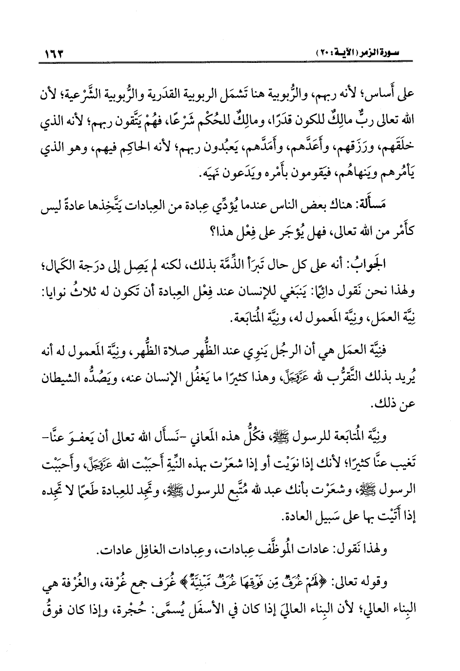 ونِيَّة المُتابَعة للرسول - صلى الله عليه وسلم -، فكُلُّ هذه المَعاني - نَسأَل الله تعالى أن يَعفوَ عنَّا - تَغيب عنَّا كثيرًا؛ لأنك إذا نوَيْت أو إذا شعَرْت بهذه النِّيةِ أَحبَبْت الله عَزَّ وَجَلَّ، وأَحبَبْت الرسول - صلى الله عليه وسلم -، وشعَرْت بأنك عبد لله مُتَّبع للرسول - صلى الله عليه وسلم -، وتَجِد للعِبادة طَعمًا لا تَجِده إذا أَتَيْت بها على سَبيل العادة.