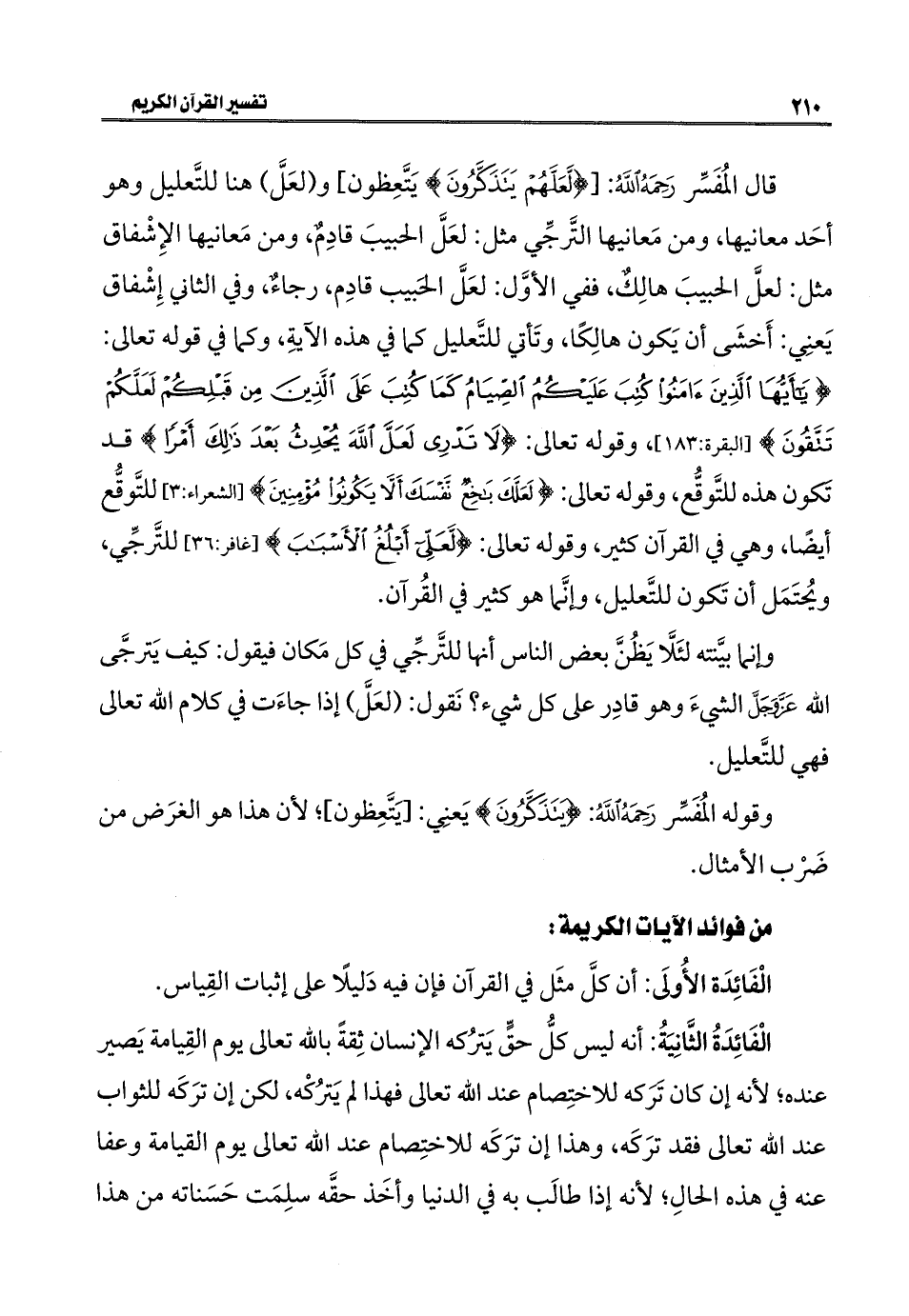 وإنما بيَّنته لئَلَّا يَظُنَّ بعض الناس أنها للتَّرجِّي في كل مَكان فيقول: كيف يَترجَّى الله عَزَّ وَجَلَّ الشيءَ وهو قادِر على كل شيء؟ نَقول: (لعَلَّ) إذا جاءَت في كلام الله تعالى فهي للتَّعليل.