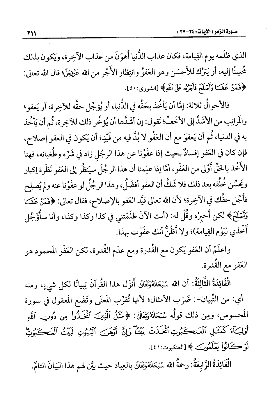واعلَمْ أن العَفو يَكون مع القُدرة ومع عدَم القُدرة، لكن العَفْو المَحمود هو العَفو مع القُدرة.
