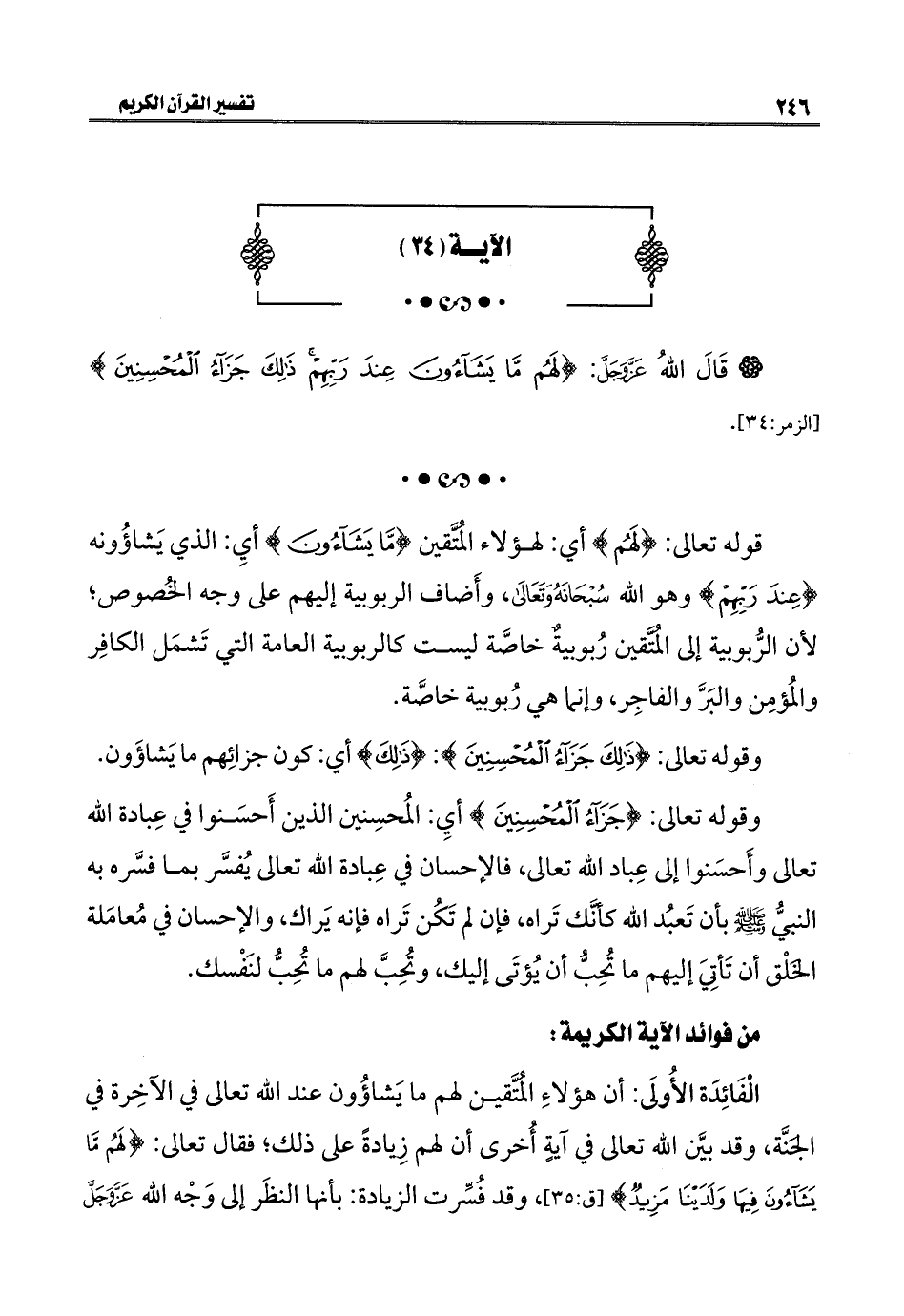 * قَالَ اللهُ عَزَّ وَجَلَّ: {لَهُمْ مَا يَشَاءُونَ عِنْدَ رَبِّهِمْ ذَلِكَ جَزَاءُ الْمُحْسِنِينَ} [الزمر: ٣٤].