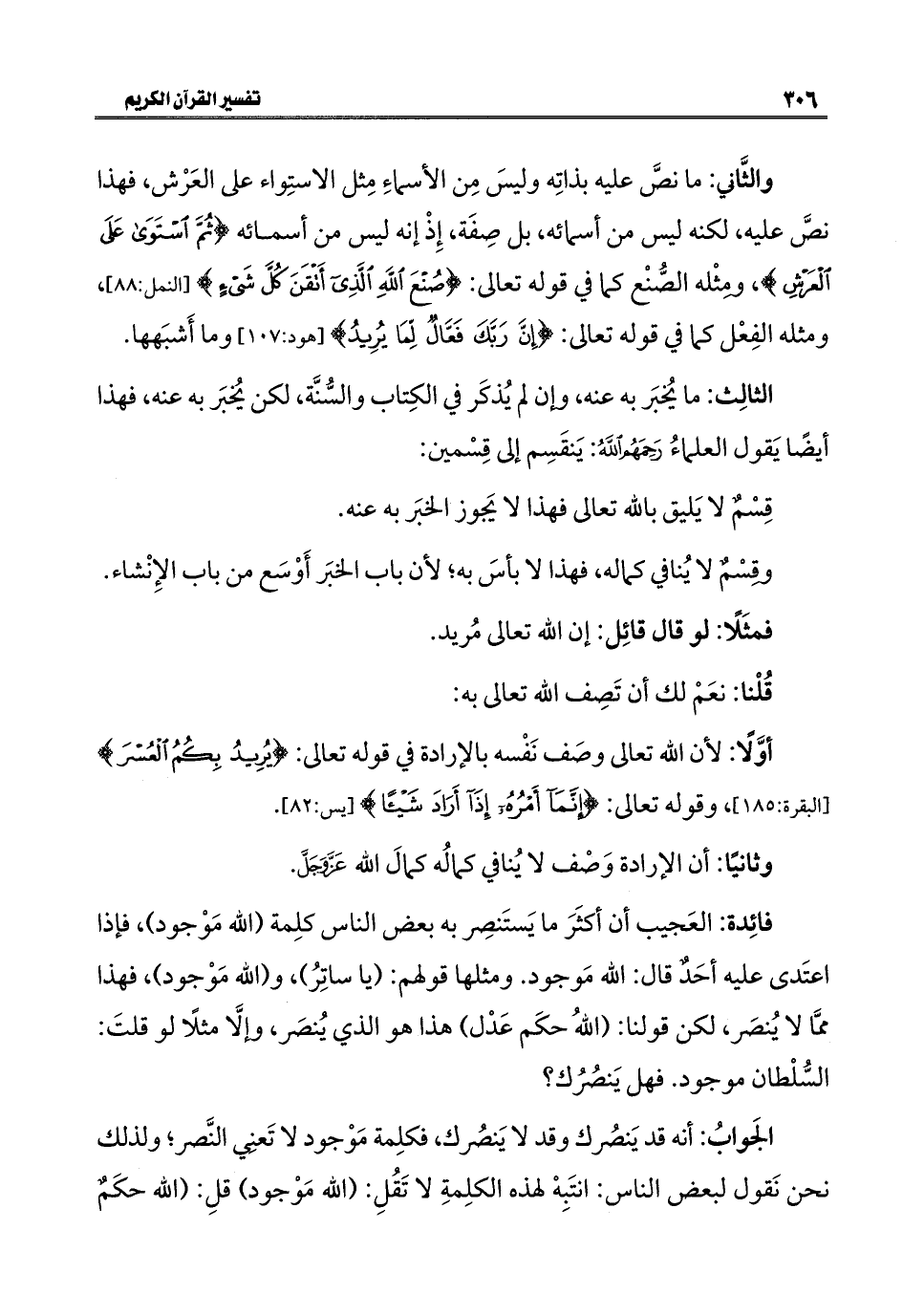 وثانيًا: أن الإرادة وَصْف لا يُنافي كمالُه كمالَ الله عَزَّ وَجَلَّ.