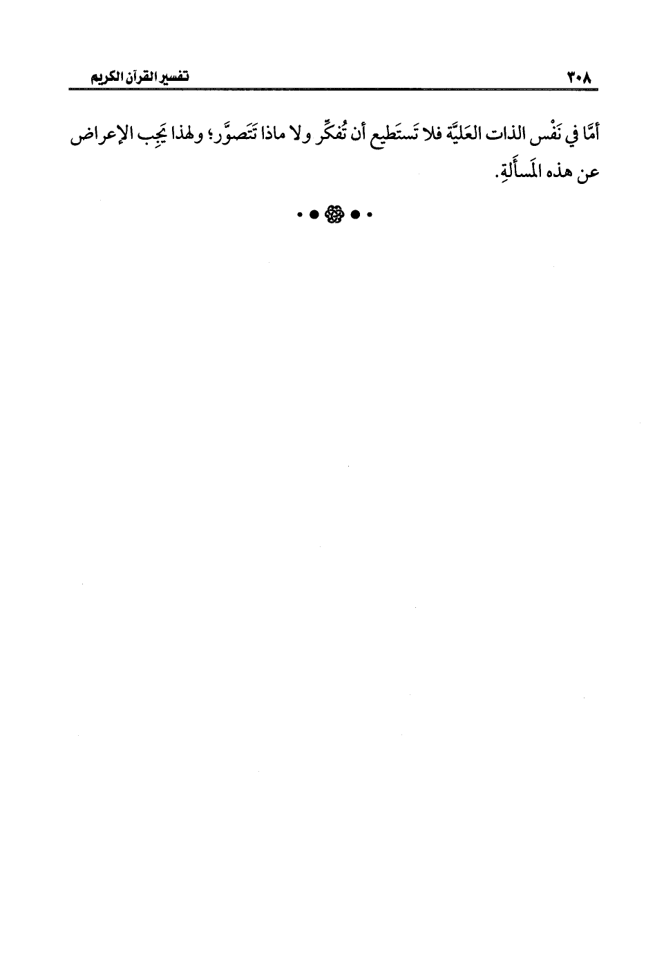 أمَّا في نَفْس الذات العَليَّة فلا تَستَطيع أن تُفكِّر ولا ماذا تَتَصوَّر؛ ولهذا يَجِب الإعراض عن هذه المَسأَلةِ.