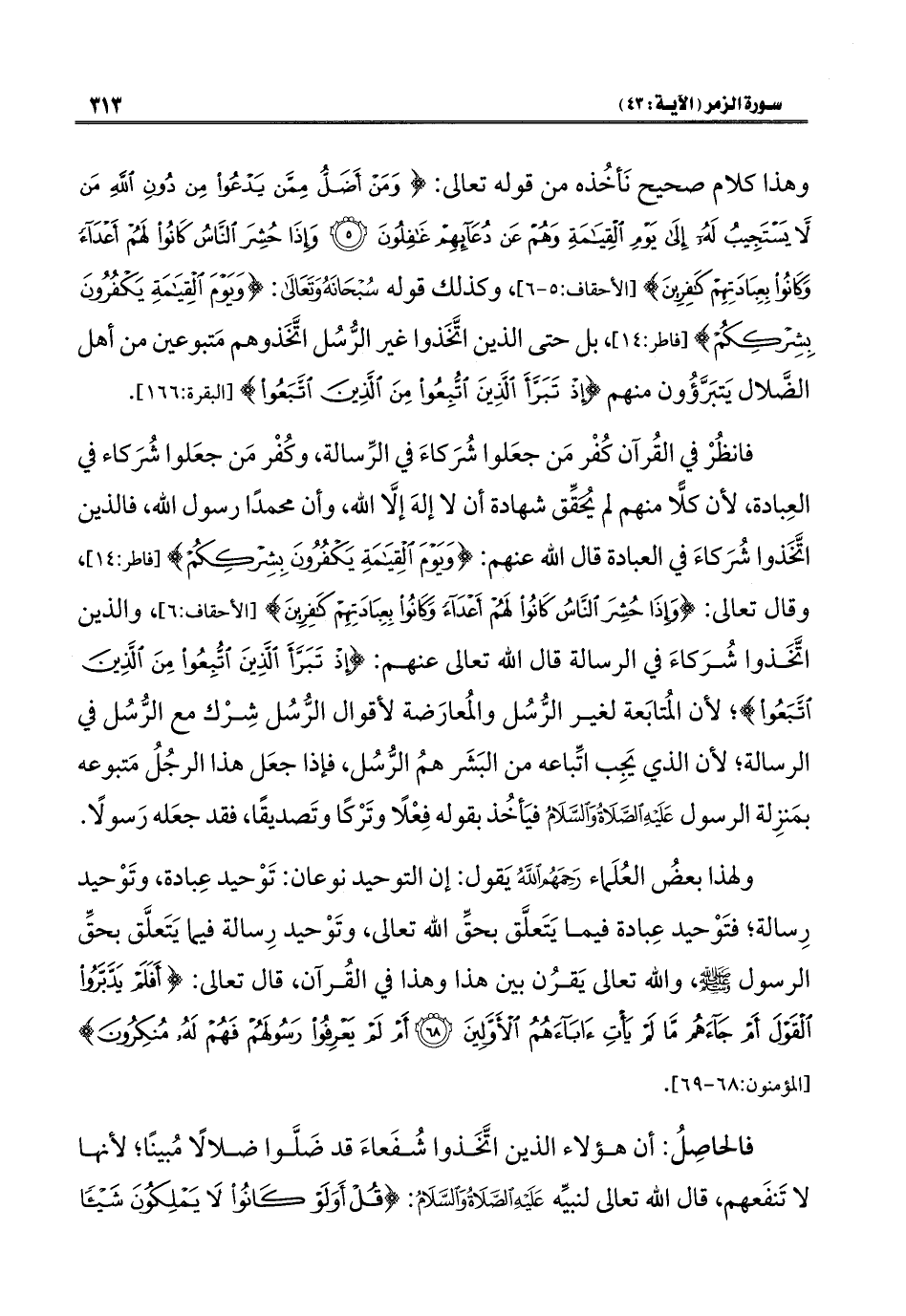 وهذا كلام صحيح نَأخُذه من قوله تعالى: {وَمَنْ أَضَلُّ مِمَّنْ يَدْعُو مِنْ دُونِ اللَّهِ مَنْ لَا يَسْتَجِيبُ لَهُ إِلَى يَوْمِ الْقِيَامَةِ وَهُمْ عَنْ دُعَائِهِمْ غَافِلُونَ (٥) وَإِذَا حُشِرَ النَّاسُ كَانُوا لَهُمْ أَعْدَاءً وَكَانُوا بِعِبَادَتِهِمْ كَافِرِينَ} [الأحقاف: ٥، ٦]، وكذلك قوله سُبْحَانَهُ وَتَعَالَى: {وَيَوْمَ الْقِيَامَةِ يَكْفُرُونَ بِشِرْكِكُمْ} [فاطر: ١٤]، بل حتى الذين اتَّخَذوا غير الرُّسُل اتَّخَذوهم مَتبوعين من أهل الضَّلال يَتبَرَّؤُون منهم {إِذْ تَبَرَّأَ الَّذِينَ اتُّبِعُوا مِنَ الَّذِينَ اتَّبَعُوا} [البقرة: ١٦٦].