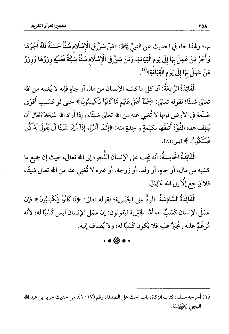 (١) أخرجه مسلم: كتاب الزكاة، باب الحث على الصدقة، رقم (١٠١٧)، من حديث جرير بن عبد الله البجلي - رضي الله عنه -.