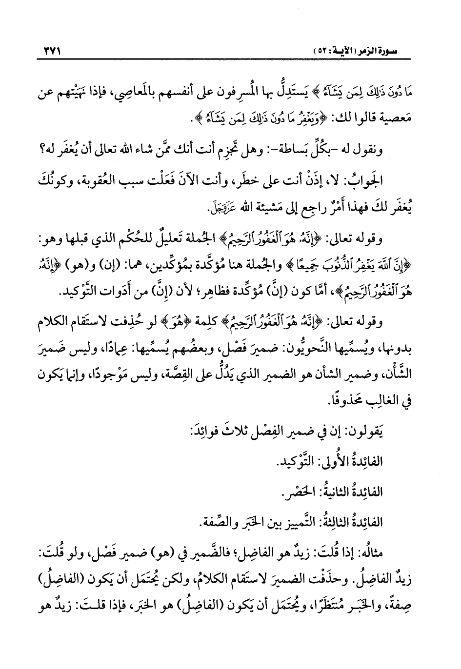 يَقولون: إن في ضمير الفَصْل ثلاثَ فوائِدَ: