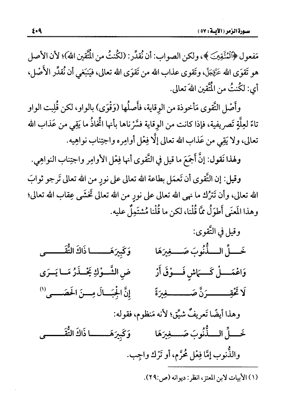خَلِّ الذُّنُوبَ صَغِيرَهَا ... وَكبِيرَهَا ذَاكَ التُّقَى