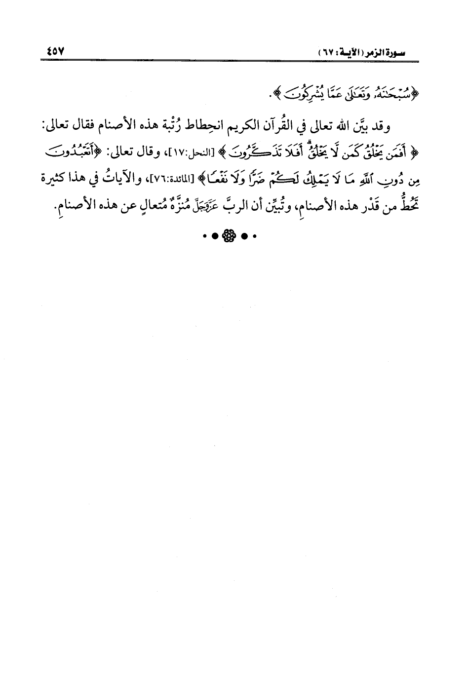 وقد بيَّن الله تعالى في القُرآن الكريم انحِطاط رُتْبة هذه الأصنام فقال تعالى: {أَفَمَنْ يَخْلُقُ كَمَنْ لَا يَخْلُقُ أَفَلَا تَذَكَّرُونَ} [النحل: ١٧]، وقال تعالى: {أَتَعْبُدُونَ مِنْ دُونِ اللَّهِ مَا لَا يَمْلِكُ لَكُمْ ضَرًّا وَلَا نَفْعًا} [المائدة: ٧٦]، والآياتُ في هذا كثيرة تَحُطُّ من قَدْر هذه الأصنامِ، وتُبيِّن أن الربَّ عَزَّ وَجَلَّ مُنزَّهٌ مُتعالٍ عن هذه الأصنامِ.