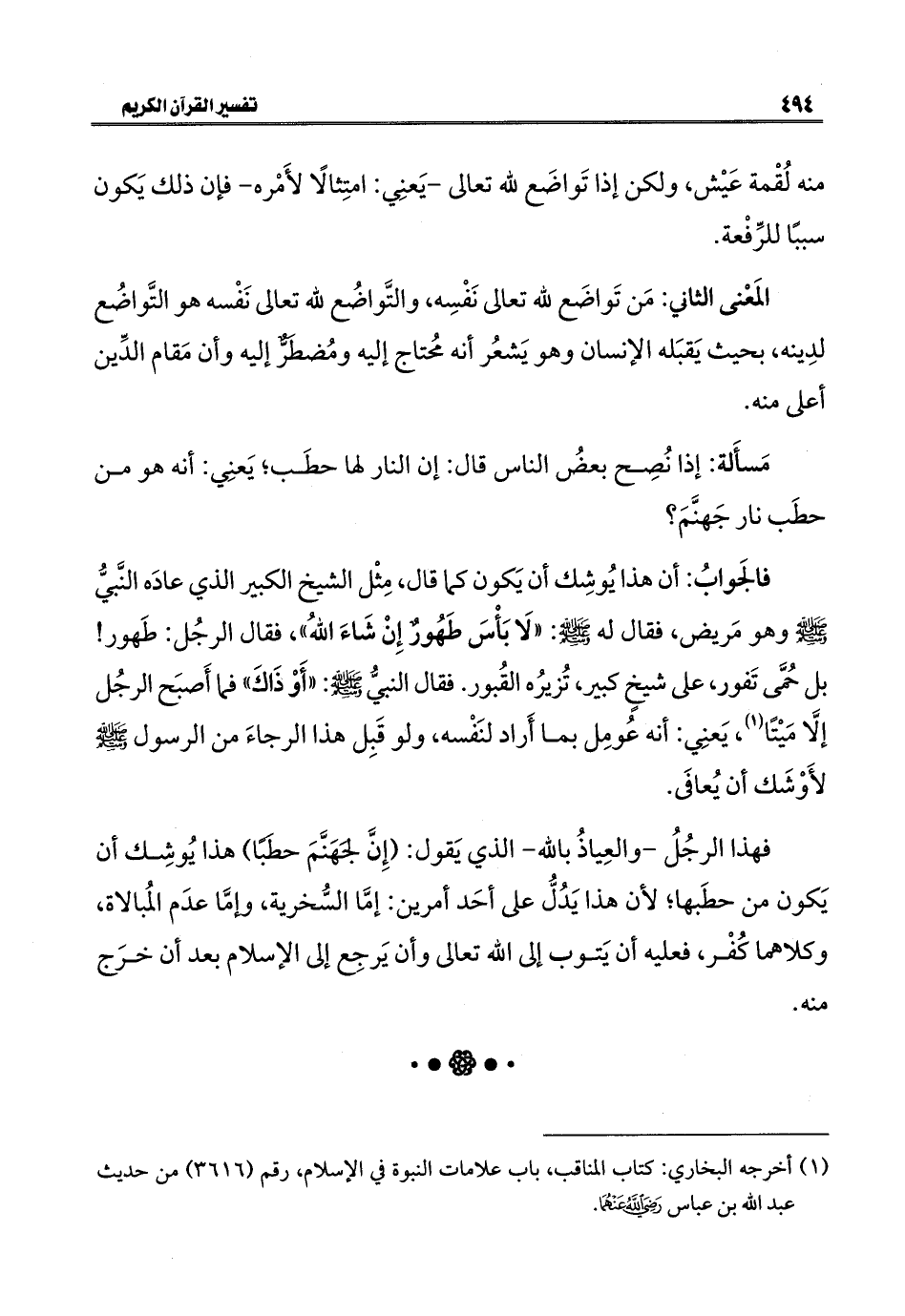 (١) أخرجه البخاري: كتاب المناقب، باب علامات النبوة في الإسلام، رقم (٣٦١٦) من حديث عبد الله بن عباس - رضي الله عنهما -.