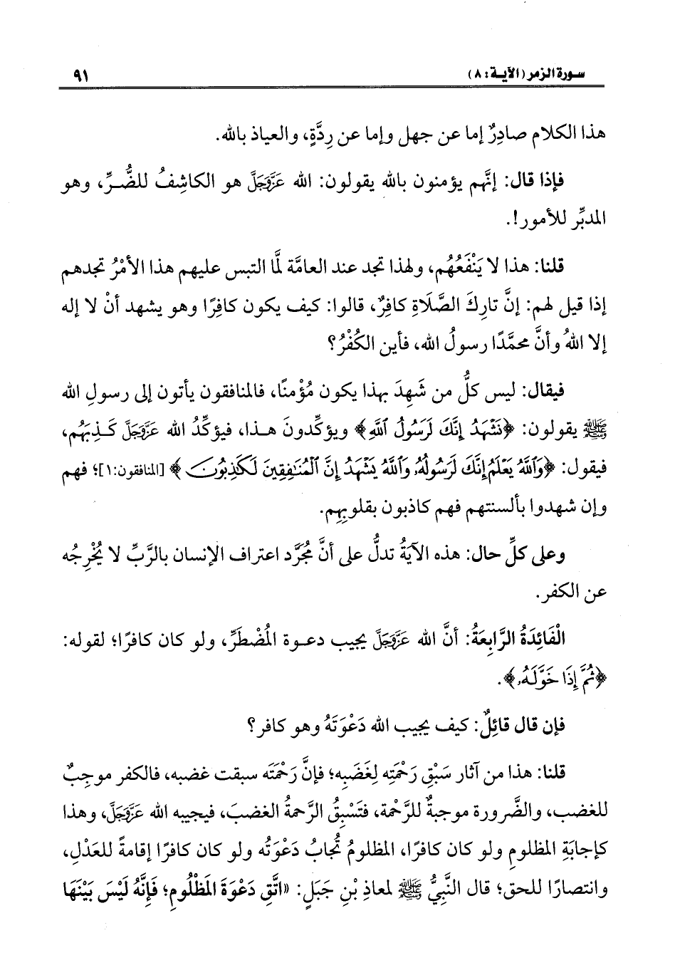 قلنا: هذا لا يَنْفَعُهُم، ولهذا تجد عند العامَّة لمَّا التبس عليهم هذا الأمْرُ تجدهم إذا قيل لهم: إنَّ تارِكَ الصَّلَاةِ كافِرٌ، قالوا: كيف يكون كافِرًا وهو يشهد أنْ لا إله إلا اللهُ وأنَّ محمَّدًا رسولُ الله، فأين الكُفْرُ؟