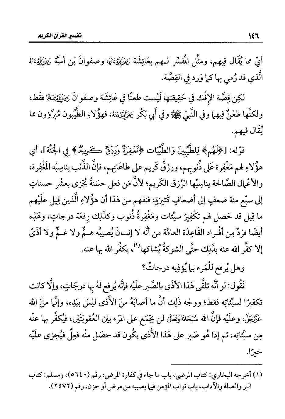 (¬١) أخرجه البخاري: كتاب المرضى، باب ما جاء في كفارة المرض، رقم (٥٦٤٠)، ومسلم: كتاب البر والصلة والآداب، باب ثواب المؤمن فيما يصيبه من مرض أو حزن، رقم (٢٥٧٢).
