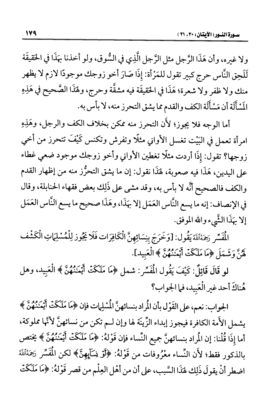 المُفَسِّر رَحَمَهُ اللهُ يَقُول: [وَخَرَجَ بِنِسَائِهِنَّ الْكَافِرَات فَلَا يجوز لِلْمُسْلِمَاتِ الْكَشْف لهنَّ وَشَمَلَ {مَا مَلَكَتْ أَيْمَانُهُنَّ} الْعَبِيد].