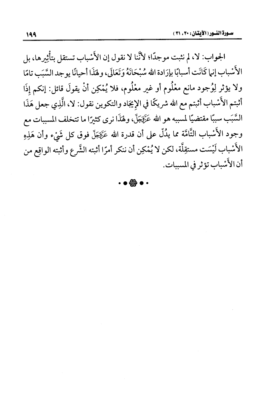 الجواب: لا، لم نثبت موجدًا؛ لأنَّنا لا نقول إن الأَسْباب تستقل بتأْثِيرها، بل الأَسْباب إنما كَانَت أسبابًا بإرَادة الله سُبْحَانَهُ وَتَعَالَى، ولهَذَا أحيانًا يوجد السَّبَب تامًّا ولا يؤثر لِوُجود مانع معْلُوم أو غير معْلُوم، فلا يُمْكِن أنْ يقولَ قائل: إنكم إِذَا أثبتم الأَسْباب أثبتم مع الله شريكًا في الإِيجَاد والتكوين نقول: لا، الَّذِي جعل هَذَا السَّبَب سببًا مقتضيًا لمسببه هو الله عَزَّ وَجَلَّ، ولهَذَا نرى كثيرًا ما تتخلف المسببات مع وجود الأَسْباب التَّامَّة مما يدُلّ على أن قدرة الله عَزَّ وَجَلَّ فوق كل شَيْء وأن هَذِهِ الأَسْباب لَيْسَت مستقِلَّة، لكن لا يُمْكِن أن ننكر أمرًا أثبته الشَّرع وأثبته الواقِع من أن الأَسْباب تؤثر في المسببات.