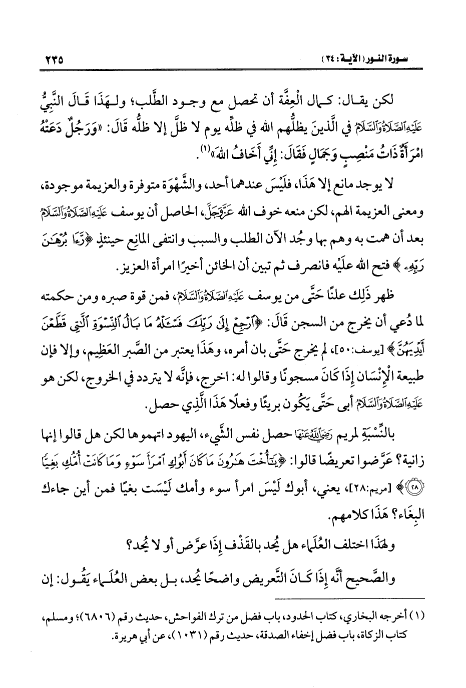 بالنِّسْبَةِ لمريم - رضي الله عنها - حصل نفس الشَّيء، اليهود اتهموها لكن هل قالوا إنها زانية؟ عَرَّضوا تعريضًا قالوا: {يَاأُخْتَ هَارُونَ مَا كَانَ أَبُوكِ امْرَأَ سَوْءٍ وَمَا كَانَتْ أُمُّكِ بَغِيًّا (٢٨)} [مريم: ٢٨]، يعني، أبوك لَيْسَ امرأ سوء وأمك لَيْسَت بغيًا فمن أين جاءك البِغَاء؟ هَذَا كلامهم.