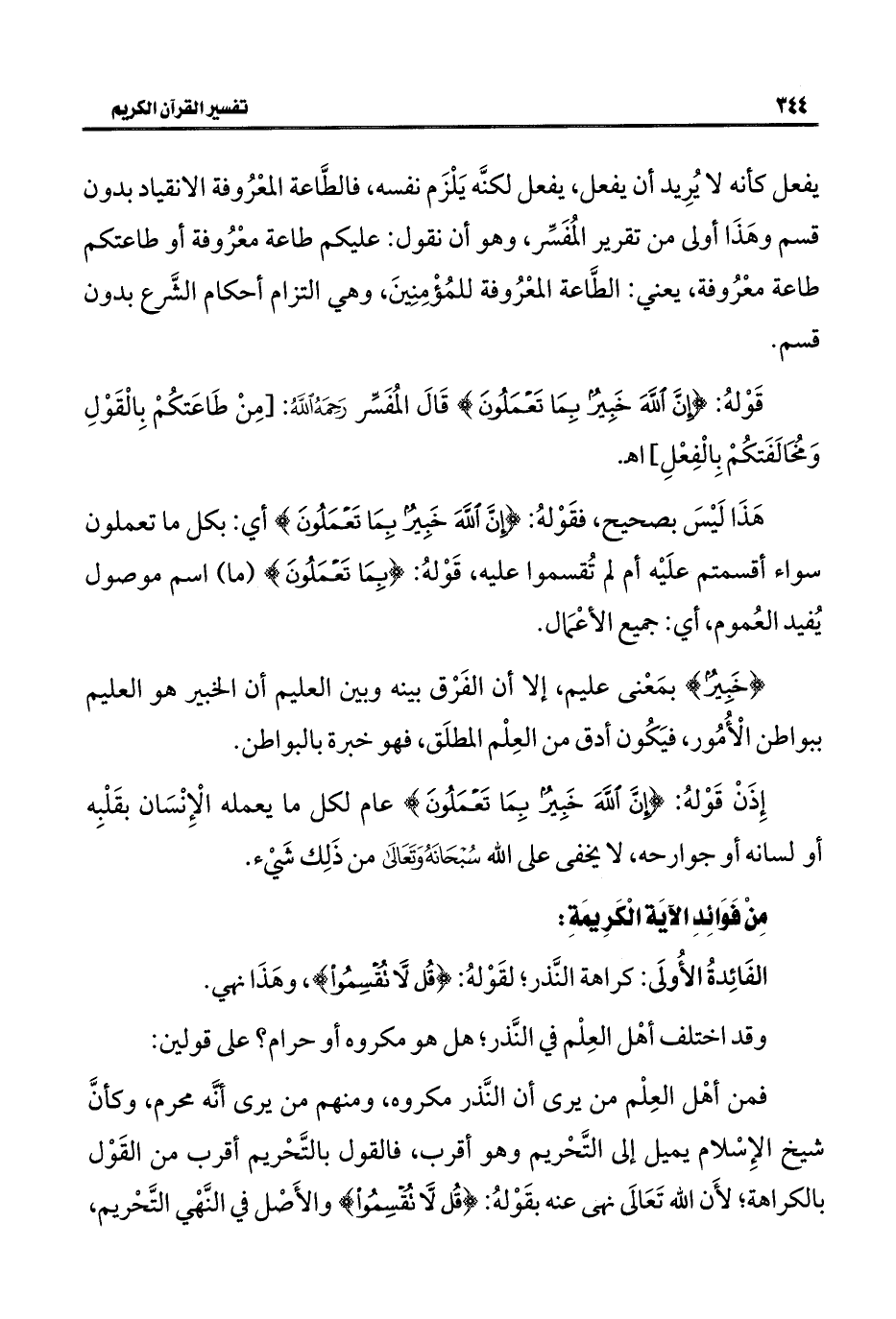 قَوْلهُ: {إِنَّ اللَّهَ خَبِيرٌ بِمَا تَعْمَلُونَ} قَالَ المُفَسِّر رَحَمَهُ الله: [مِنْ طَاعَتكُمْ بِالْقَوْلِ وَمُخَالَفَتكُمْ بِالْفِعْلِ] اهـ.