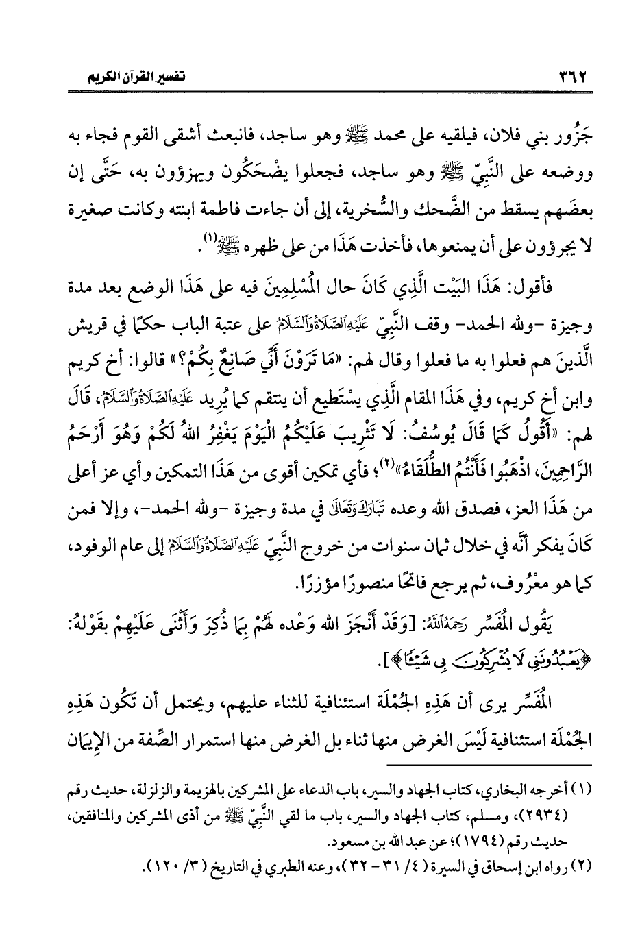 يَقُول المُفَسِّر رَحَمَهُ اللَّهُ: [وَقَدْ أَنْجَزَ الله وَعْده لهمْ بِمَا ذُكِرَ وَأَثَنَى عَلَيْهِمْ بقَوْلهُ: {يَعْبُدُونَنِي لَا يُشْرِكُونَ بِي شَيْئًا}].