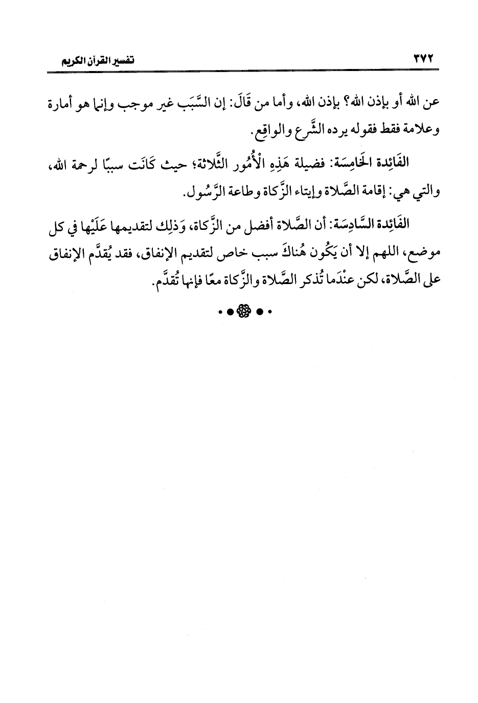 الفَائِدة السَّادِسَة: أن الصَّلاة أفضل من الزَّكاة، وَذلِك لتقديمها عَلَيْها في كل موضع، اللهم إلَّا أن يَكُون هُناكَ سبب خاص لتقديم الإنفاق، فقد يُقدَّم الإنفاق على الصَّلاة، لكن عنْدَما تُذكر الصَّلاة والزَّكاة معًا فإنها تُقدَّم.