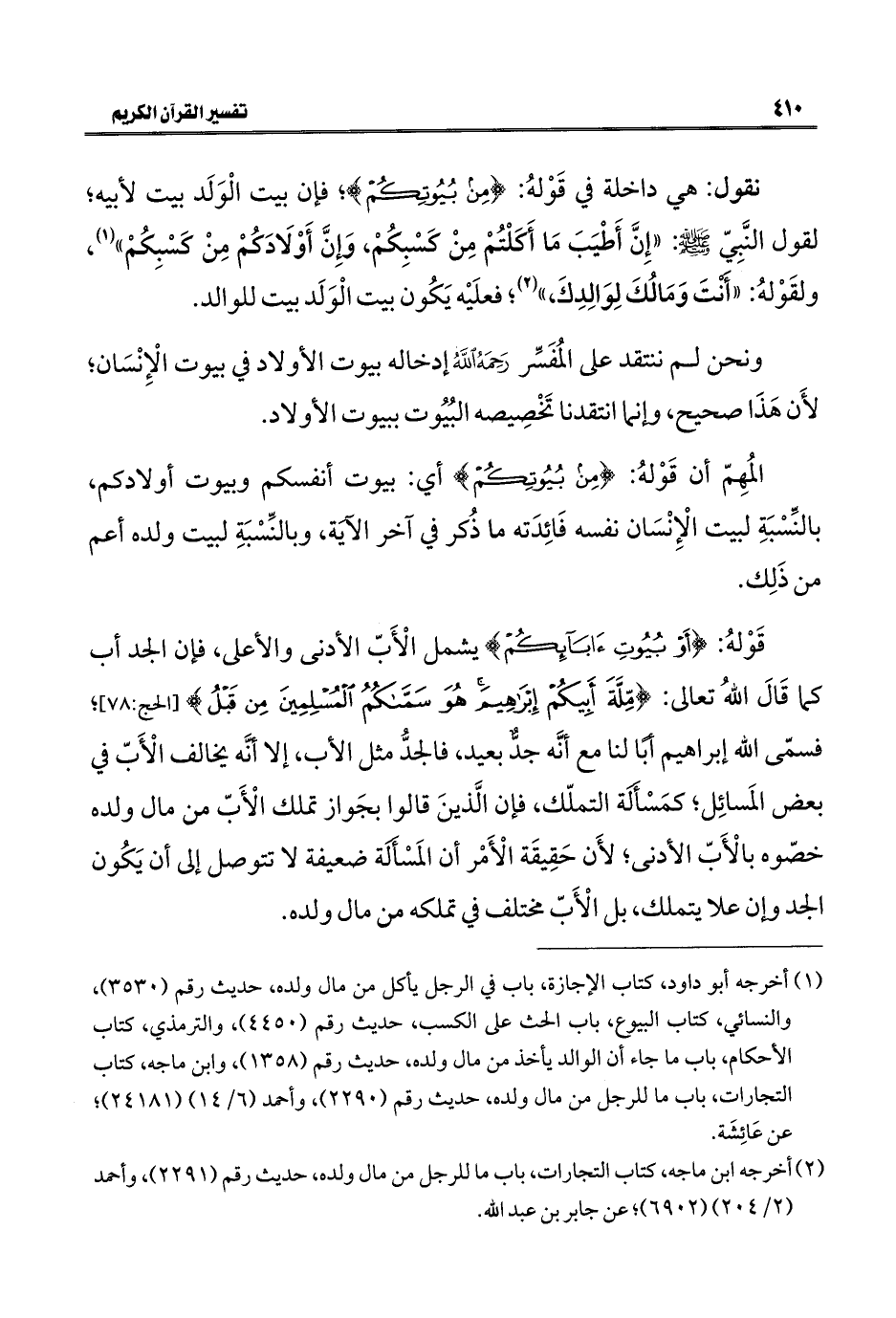 ونحن لم ننتقد على المُفَسِّر رَحَمَهُ اللَّهُ إدخاله بيوت الأولاد في بيوت الْإِنْسَان، لأَن هَذَا صحيح، وإنَّما انتقدنا تَخْصِيصه البُيُوت ببيوت الأولاد.