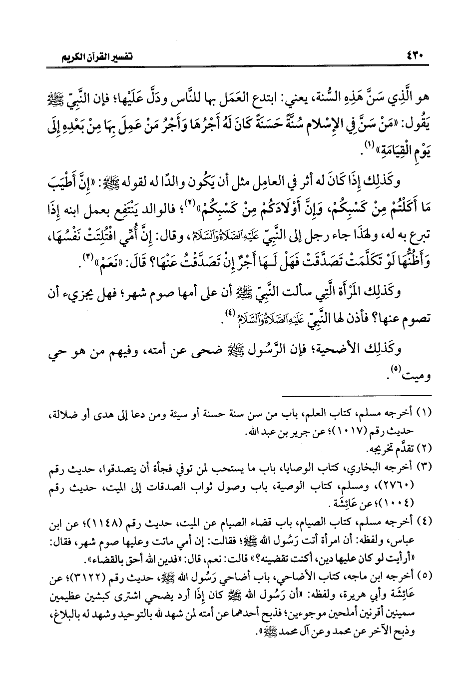 (¬١) أخرجه مسلم، كتاب العلم، باب من سن سنة حسنة أو سيئة ومن دعا إلى هدى أو ضلالة، حديث رقم (١٠١٧)؛ عن جرير بن عبد الله.
