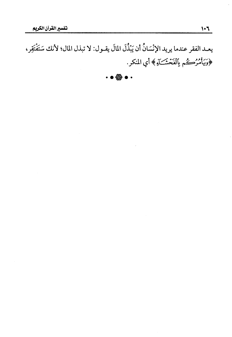 يعد الفقر عندما يريد الإنْسَانُ أن يَبْذُلَ المالَ يقول: لا تبذل المال؛ لأنك سَتَفْتَقِر، {وَيَأْمُرُكُمْ بِالْفَحْشَاءِ} أي المنكر.