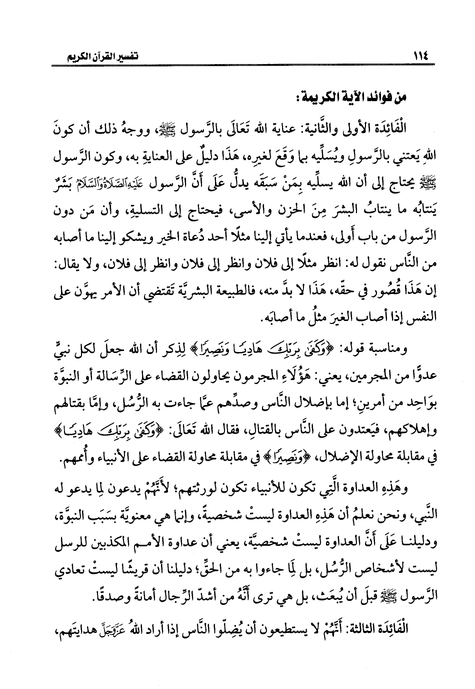 ومناسبة قوله: {وَكَفَى بِرَبِّكَ هَادِيًا وَنَصِيرًا} لِذِكر أن اللَّه جعلَ لكل نبيٍّ عدوًّا من المجرمين، يعني: هَؤُلَاءِ المجرمون يحاولون القضاء على الرِّسَالة أو النبوَّة بوَاحِد من أمرينِ؛ إما بإضلال النَّاس وصدِّهم عَّما جاءت به الرُّسُل، وإمَّا بقتالهم وإهلاكهم، فيَعتدون على النَّاس بالقتالِ، فقال اللَّه تَعَالَى: {وَكَفَى بِرَبِّكَ هَادِيًا} في مقابلة محاولة الإضلال، {وَنَصِيرًا} في مقابلة محاولة القضاء على الأنبياء وأُممهم.