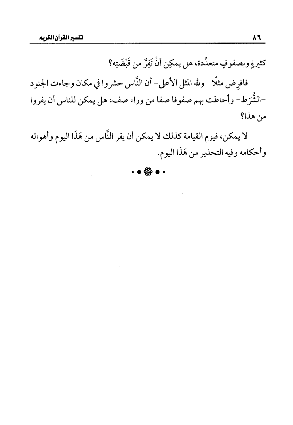 فافرِض مثلًا -وللَّه المثل الأعلى- أن النَّاس حشروا في مكان وجاءت الجنود -الشُّرَط- وأحاطت بهم صفوفا صفا من وراء صف، هل يمكن للناس أن يفروا من هذا؟