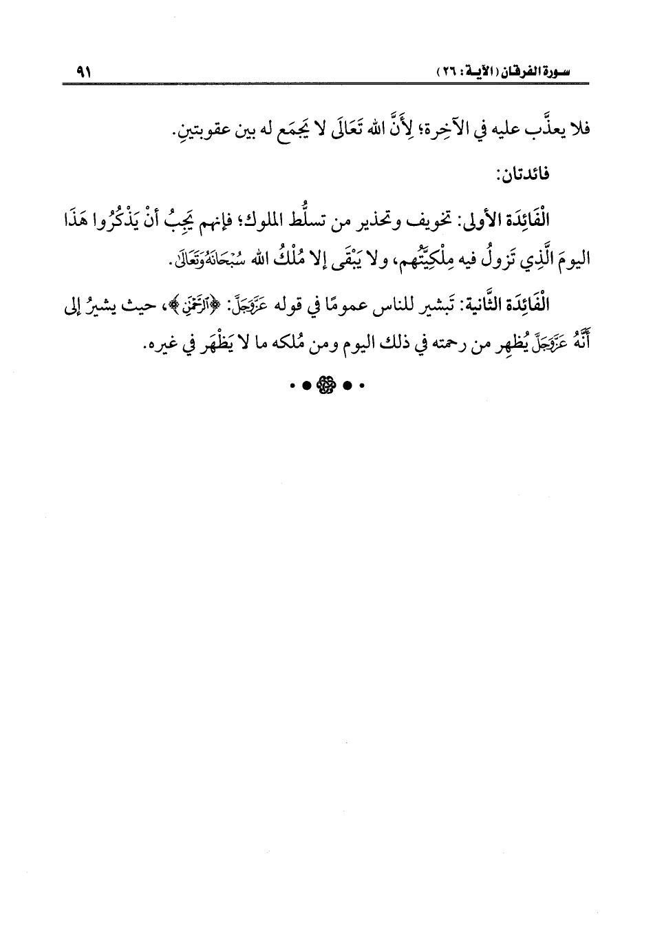 الْفَائِدَة الأولى: تخويف وتحذير من تسلُّط الملوك؛ فإنهم يَجِبُ أنْ يَذْكُرُوا هَذَا اليومَ الَّذِي تَزولُ فيه مِلْكِيَّتُهم، ولا يَبْقَى إلا مُلْكُ اللَّه سُبْحَانَهُ وَتَعَالَى.