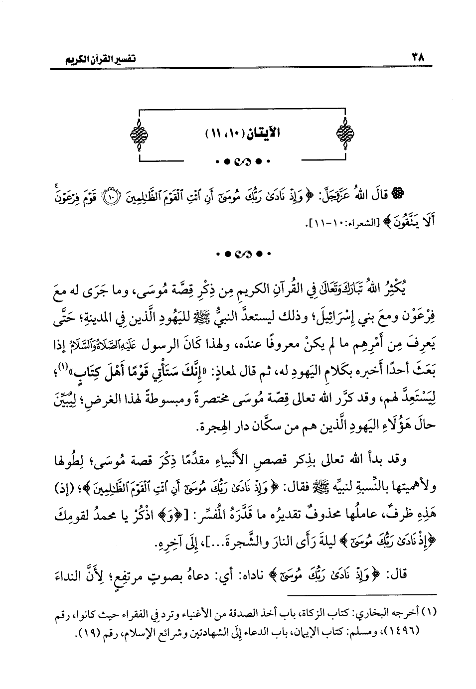 يُكْثِرُ اللهُ تَبَارَكَ وَتَعَالَى فِي القُرآنِ الكريمِ مِن ذِكْرِ قِصَّة مُوسَى، وما جَرَى له معَ فِرْعَوْن ومعَ بني إِسْرَائِيلَ؛ وذلك ليستعدَّ النبيُّ - صلى الله عليه وسلم - لليَهُودِ الَّذين فِي المدينةِ؛ حَتَّى يَعرِفَ مِن أَمْرِهِم ما لم يكنْ معروفًا عندَه، ولهذا كَانَ الرسول عَلَيْهِ الصَّلَاةُ وَالسَّلَامُ إذا بَعَثَ أحدًا أَخبره بكَلامِ اليَهودِ له، ثم قال لمعاذٍ: "إِنَّكَ سَتَأْتِي قَوْمًا أَهْلَ كِتَابٍ" (¬١)؛ لِيَسْتَعِدَّ لهم، وقد كرَّر الله تعالى قِصّة مُوسَى مختصرةً ومبسوطةً لهذا الغرضِ؛ لِيُبَيِّنَ حالَ هَؤُلَاءِ اليَهودِ الَّذين هم من سكَّان دار الهِجرة.