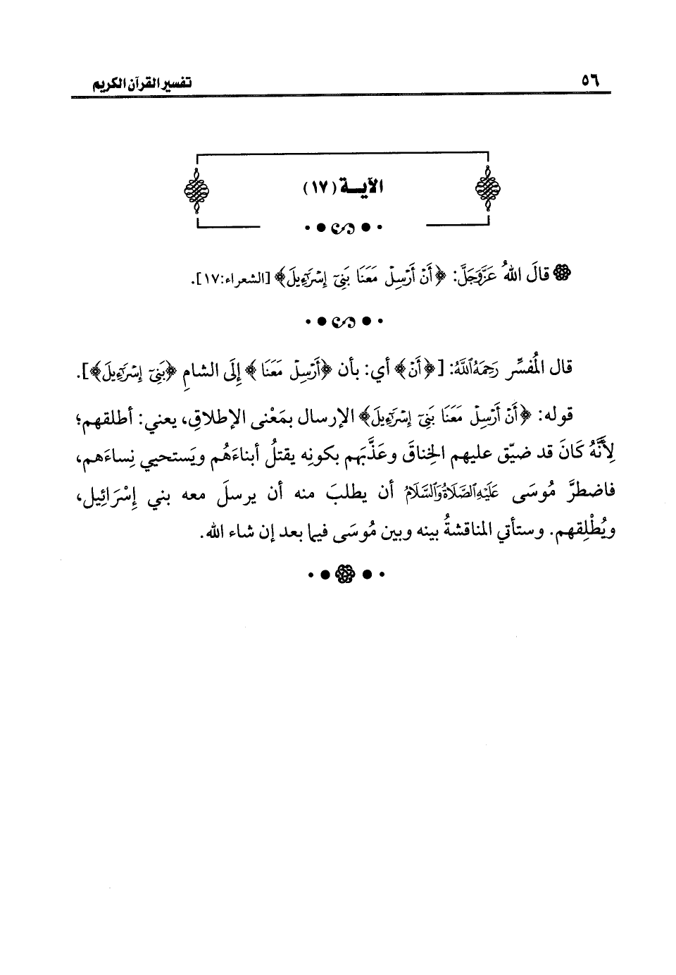 قال المُفسِّر رَحِمَهُ اللَّهُ: [{أَنْ} أي: بأن {أَرْسِلْ مَعَنَا} إِلَى الشامِ {بَنِي إِسْرَائِيلَ}].