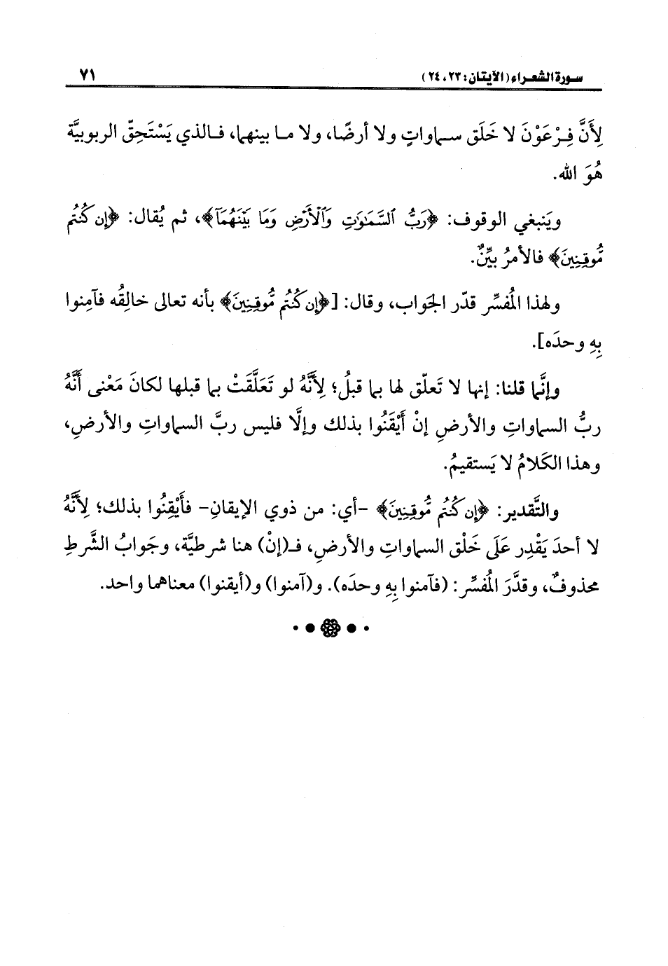 ويَنبغي الوقوف: {رَبُّ السَّمَاوَاتِ وَالْأَرْضِ وَمَا بَيْنَهُمَا}، ثم يُقال: {إِنْ كُنْتُمْ مُوقِنِينَ} فالأمرُ بيِّنٌ.