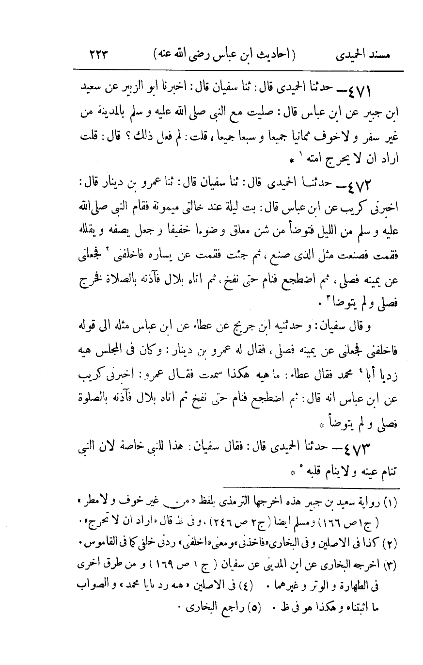 473 - حدثنا الحميدي قال فقال سفيان : هذا للنبي خاصة لأن النبي تنام عينه ولا ينام قلبه