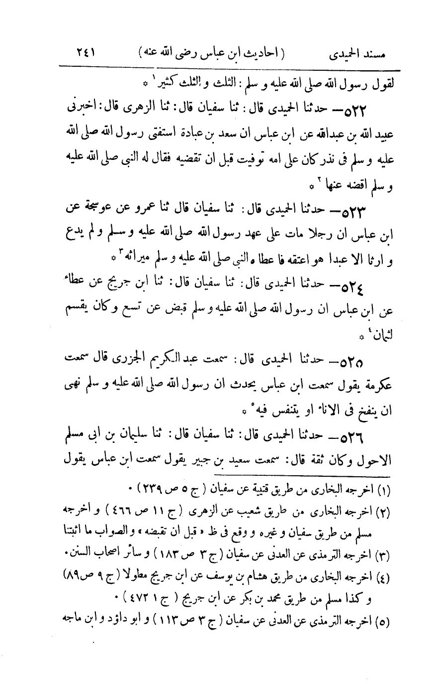 523 - حدثنا الحميدي قال ثنا سفيان قال ثنا عمرو عن عوسجة عن بن عباس : أن رجلا مات على عهد رسول الله صلى الله عليه و سلم ولم يدع وارثا إلا عبدا هو أعتقه فأعطاه النبي صلى الله عليه و سلم ميراثه