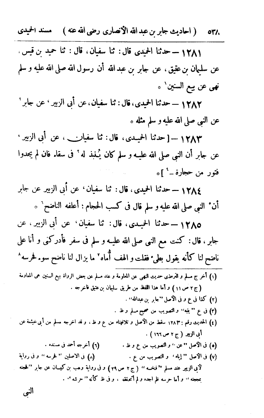 1282 - حدثنا الحميدي قال ثنا سفيان عن أبي الزبير عن جابر عن النبي صلى الله عليه و سلم : مثله