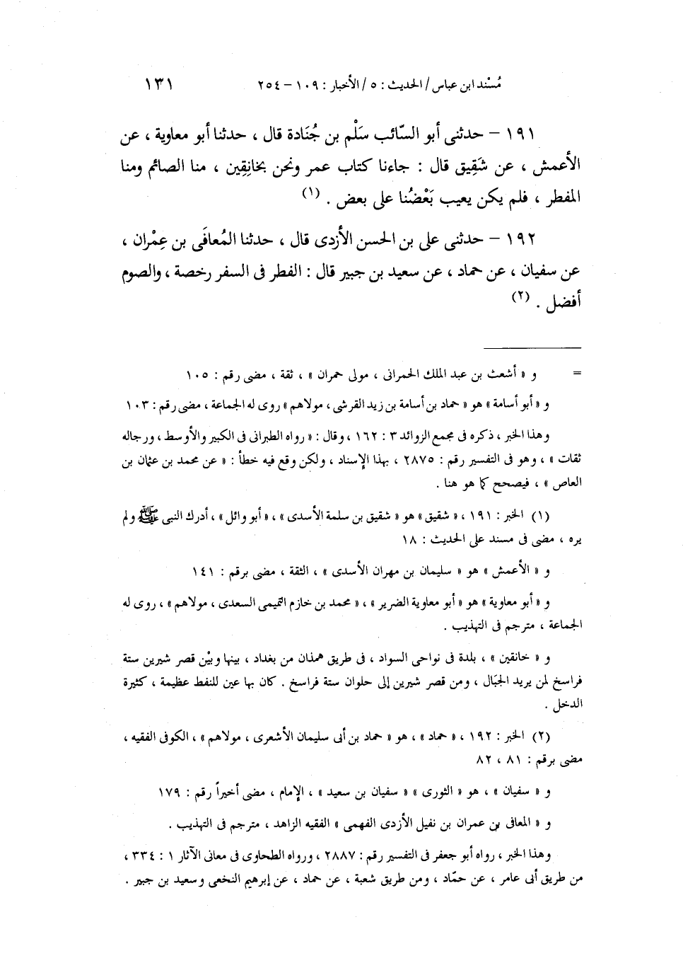 191 - حَدَّثَنِي أَبُو السَّائِبِ، سَلْمُ بْنُ جُنَادَةَ قَالَ: حَدَّثَنَا أَبُو مُعَاوِيَةَ، عَنِ الْأَعْمَشِ، عَنْ شَقِيقٍ، قَالَ: «§جَاءَنَا كِتَابُ عُمَرَ وَنَحْنُ بِخَانِقِينَ، مِنَّا الصَّائِمُ وَمِنَّا الْمُفْطِرُ، فَلَمْ يَكُنْ يَعِيبُ بَعْضُنَا عَلَى بَعْضٍ»