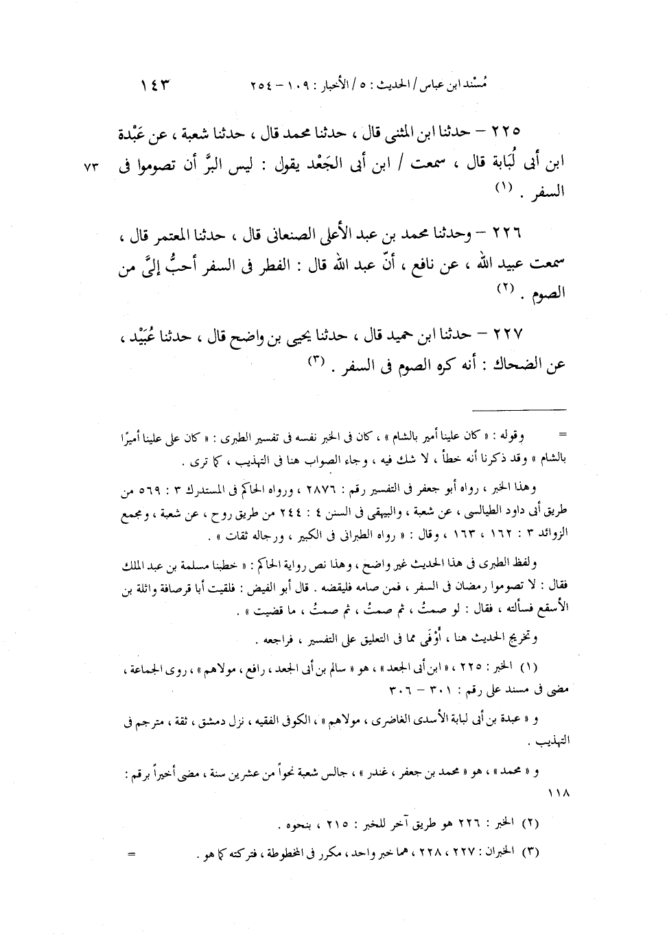 225 - حَدَّثَنَا ابْنُ الْمُثَنَّى، قَالَ: حَدَّثَنَا مُحَمَّدٌ، قَالَ: حَدَّثَنَا شُعْبَةُ، عَنْ عَبْدَةَ بْنِ أَبِي لُبَابَةَ، قَالَ: سَمِعْتُ ابْنَ أَبِي الْجَعْدِ، يَقُولُ: «§لَيْسَ الْبِرُّ أَنْ تَصُومُوا فِي السَّفَرِ»