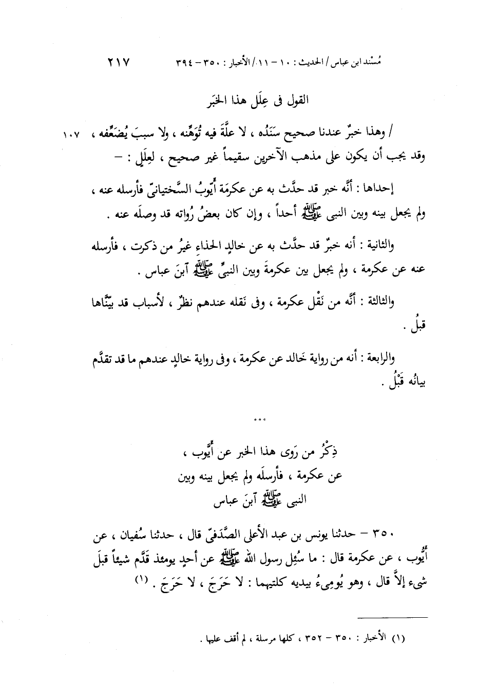 350 - حَدَّثَنَا يُونُسُ بْنُ عَبْدِ الْأَعْلَى الصَّدَفِيُّ، قَالَ: حَدَّثَنَا سُفْيَانُ، عَنْ أَيُّوبَ، عَنْ عِكْرِمَةَ، قَالَ: مَا §سُئِلَ رَسُولُ اللَّهِ صَلَّى اللهُ عَلَيْهِ وَسَلَّمَ عَنْ أَحَدٍ يَوْمَئِذٍ قَدَّمَ شَيْئًا قَبْلَ شَيْءٍ إِلَّا قَالَ وَهُوَ يُومِئُ بِيَدَيْهِ كِلْتَيْهِمَا: «لَا حَرَجَ، لَا حَرَجَ»