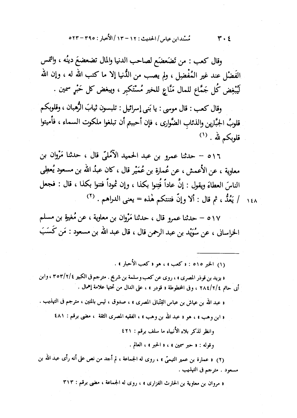516 - حَدَّثَنَا عَمْرُو بْنُ عَبْدِ الْحَمِيدِ الْآمُلِيُّ، قَالَ: حَدَّثَنَا مَرْوَانُ بْنُ مُعَاوِيَةَ، عَنِ الْأَعْمَشِ، عَنْ عُمَارَةَ بْنِ عُمَيْرٍ، قَالَ: كَانَ عَبْدُ اللَّهِ بْنُ مَسْعُودٍ يُعْطِي النَّاسَ الْعَطَاءَ، وَيَقُولُ: " إِنَّ §عَادًا فُتِنُوا بِكَذَا، وَإِنَّ ثَمُودًا فُتِنُوا بِكَذَا، قَالَ: فَجَعَلَ يَعُدُّ، ثُمَّ قَالَ: أَلَا وَإِنَّ فِتْنَتَكُمْ هَذِهِ - يَعْنِي الدَّرَاهِمَ - "