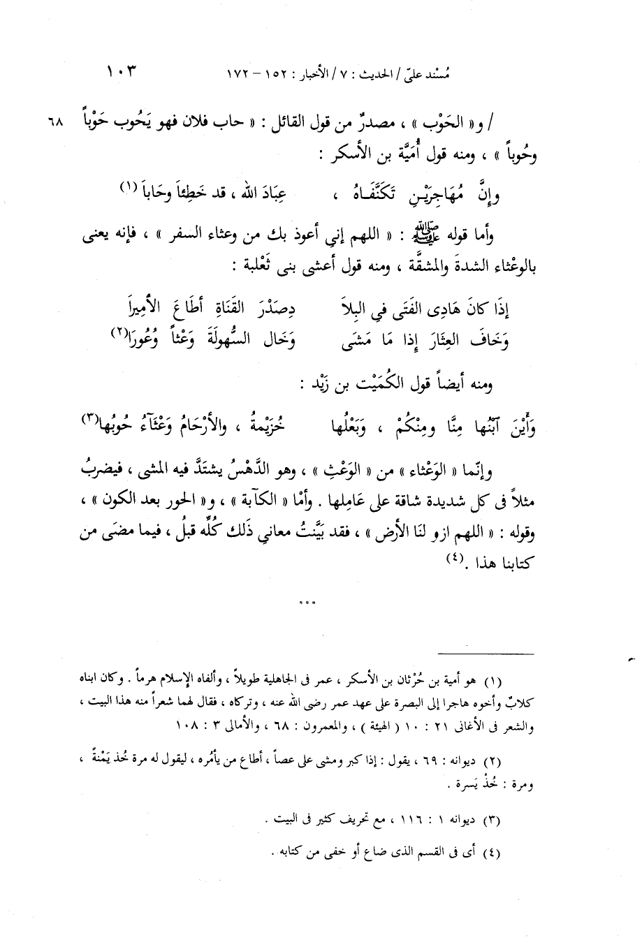 وَالْحَوْبُ: مَصْدَرٌ مِنْ قَوْلِ الْقَائِلِ: «حَابَ فُلَانٌ فَهُوَ يَحُوبُ حَوْبًا وَحُوبًا» ، وَمِنْهُ قَوْلُ أُمَيَّةَ بْنِ الْأَسْكَرِ: