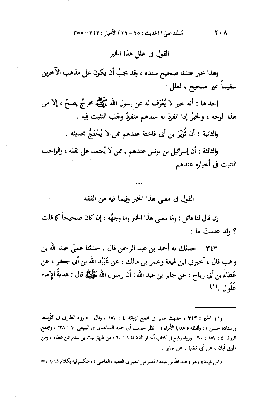 343 - حَدَّثَكَ بِهِ أَحْمَدُ بْنُ عَبْدِ الرَّحْمَنِ قَالَ: حَدَّثَنَا عَمِّي عَبْدُ اللَّهِ بْنُ وَهْبٍ، قَالَ: أَخْبَرَنِي ابْنُ لَهِيعَةَ، وَعُمَرُ بْنُ مَالِكٍ، عَنْ عُبَيْدِ اللَّهِ بْنِ أَبِي جَعْفَرٍ، عَنْ عَطَاءِ بْنِ أَبِي رَبَاحٍ، عَنْ جَابِرِ بْنِ عَبْدِ اللَّهِ، أَنَّ رَسُولَ اللَّهِ صَلَّى اللهُ عَلَيْهِ وَسَلَّمَ قَالَ: «§هَدِيَّةُ الْإِمَامِ غُلُولٌ»