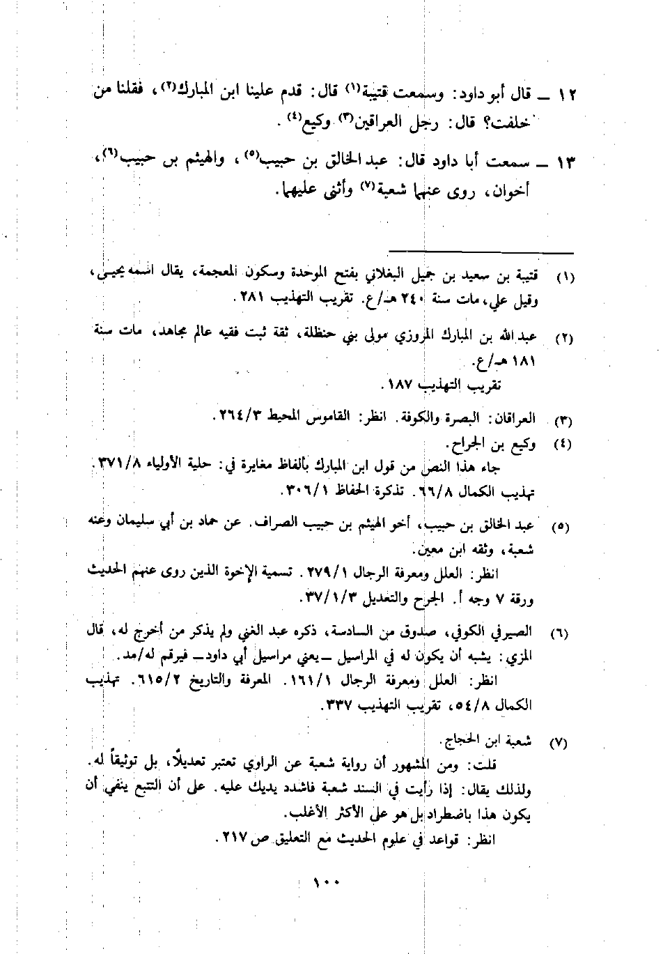 12- قَالَ أَبُو دَاوُدَ: "وسمعت قُتَيبة1 قَالَ: قَدِم عَلَيْنَا ابْن المُبَارك2، فقلنا من خَلَّفْتَ؟ قَالَ: رَجُلَ العِرَاقَيْن3 وكيع"4.