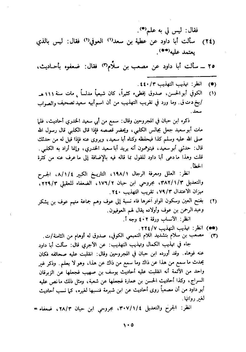 24- سألت أبا دَاوُد عَن عَطِيَّة بن سعد1 العوفي2 فقال: "لَيْسَ بالذي يعتمد عَلَيْهِ" (**) .