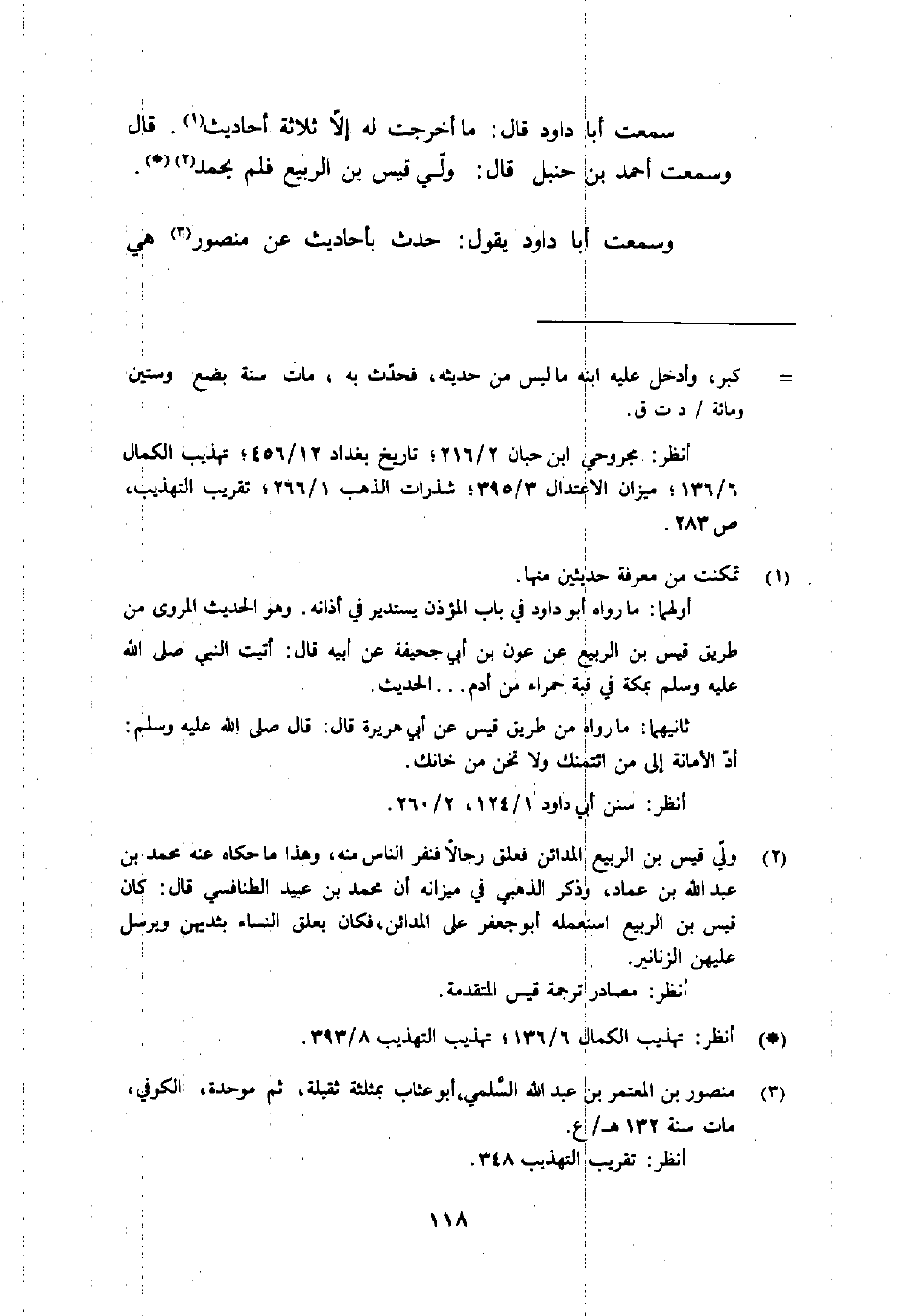 سمعت أبا دَاوُد قَالَ: "مَا أخرجت لَهُ إلا ثلاثة أحاديث1". قَالَ: "وسمعت أَحْمَد بْن حنبل قَالَ: وَلِيَ قَيْس بْن الرَّبِيع فلم يحمد"2 (*) .