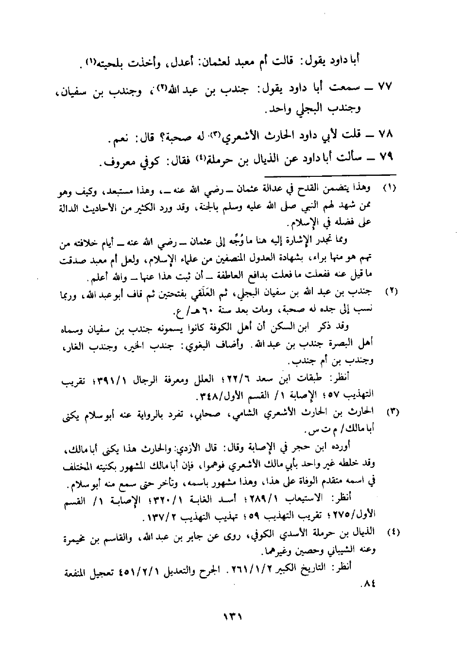 77- سمعت أبا دَاوُد يَقُول: "جندب بْن عَبْد اللَّهِ2، وجندب بْن سُفْيَان، وجندب البجلي واحد".